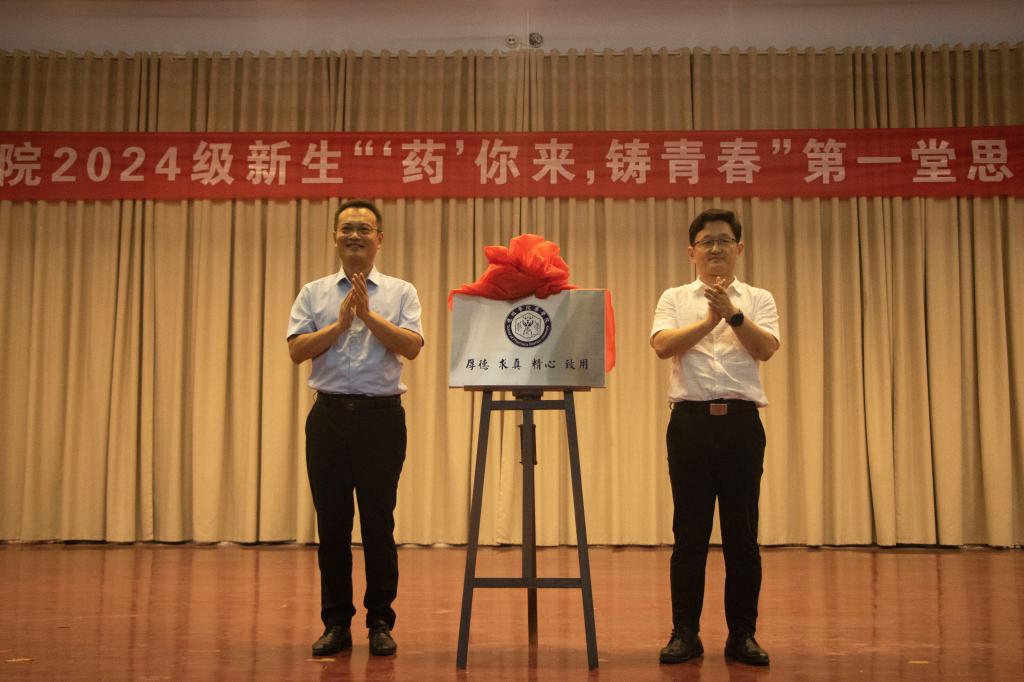仪式邀请蒋涛涛为院徽、院训进行揭牌。学院主要负责人发言,阐述了英国正版365首页的基本情况、教育理念和培养目标,鼓励新生秉持“厚德、求真、精心、致用”的院训精神,立志成为“厚药德,明药规,强药技”的药学人才,勤奋求索,善于思考,注重创新,勇攀新高,以博大的情怀和精湛的技艺服务社会,推动医药卫生事业发展,为人类生命健康造福。在校生代表、院徽设计者发言,对院徽理念和寓意进行了细致解读。