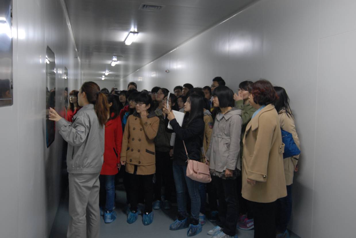 在德药制药有限公司技术人员的引导下,同学们通过视频了解了公司的企业文化。随后,进入制剂生产一线参观学习,并与技术人员进行交流沟通。同学们对制剂车间布局、自动化设备、制剂流程、GMP知识及车间的日常工作等有了直观、深入的了解。