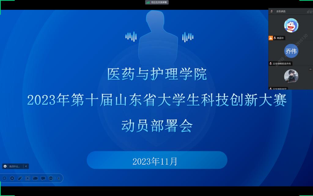 11月23日晚,医药与护理学院组织开展线上科创赛事动员部署大会,学院竞赛负责老师与学院参加科创大赛的一百余名优秀学生负责人一同参加本次大会。