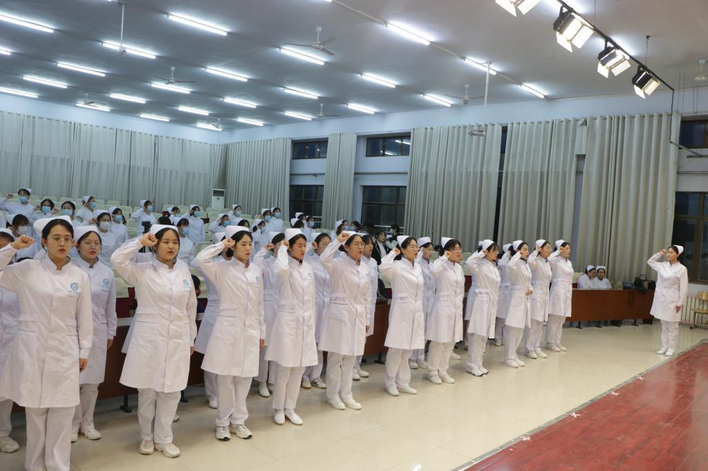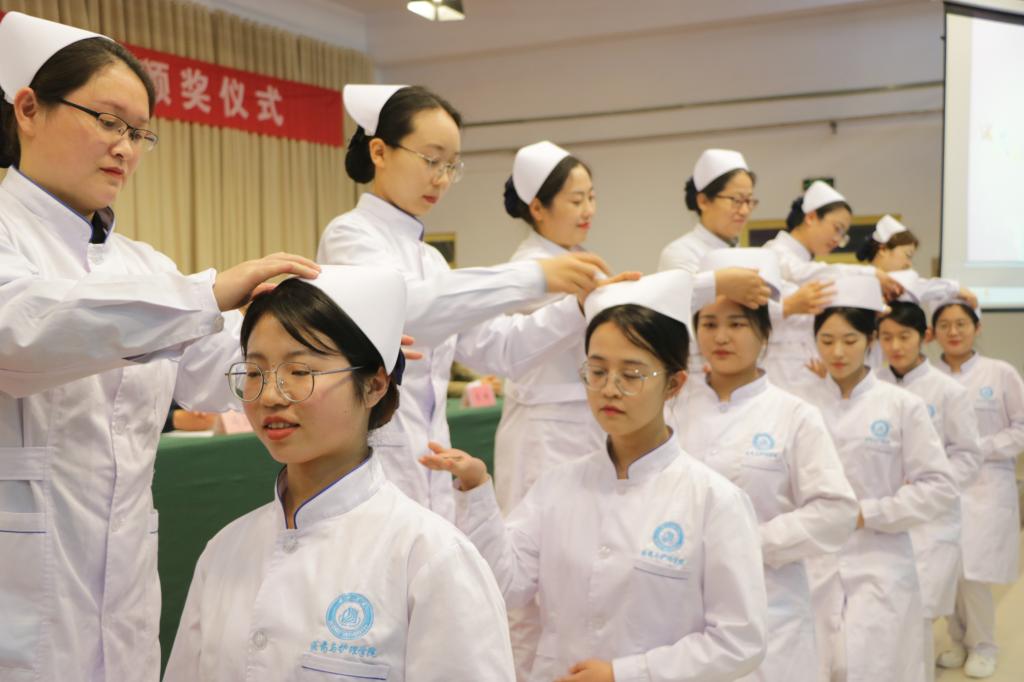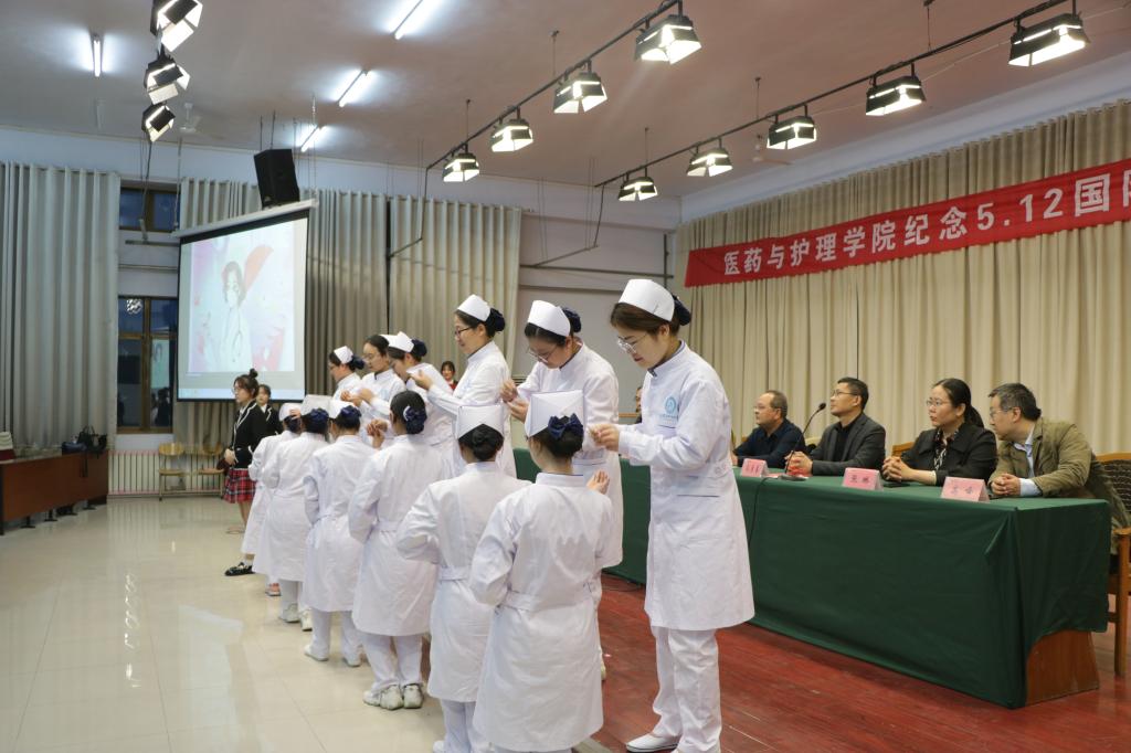 5月12日,医药与护理学院纪念“5·12”国际护士节暨护理技能大赛颁奖仪式在求实楼0409报告厅举行。颁奖结束后,护理系教师为学生代表授帽,并举行了宣誓仪式。