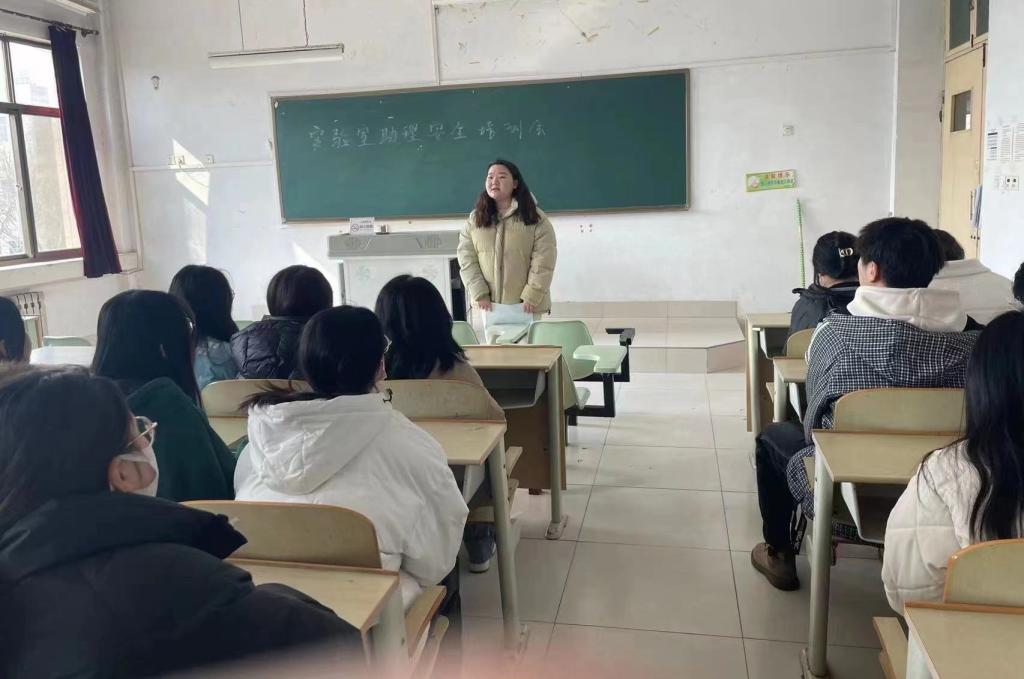 实验室助理部长任梦娇向与会人员介绍了新学期实验室助理的主要工作任务,带领大家学习了高温高压设备、气瓶、离心机等重要仪器的使用规范,强调了水、电、暖、气、危化品等使用的注意事项,要求大家进入实验室必须遵循准入制度,做好个人防护。