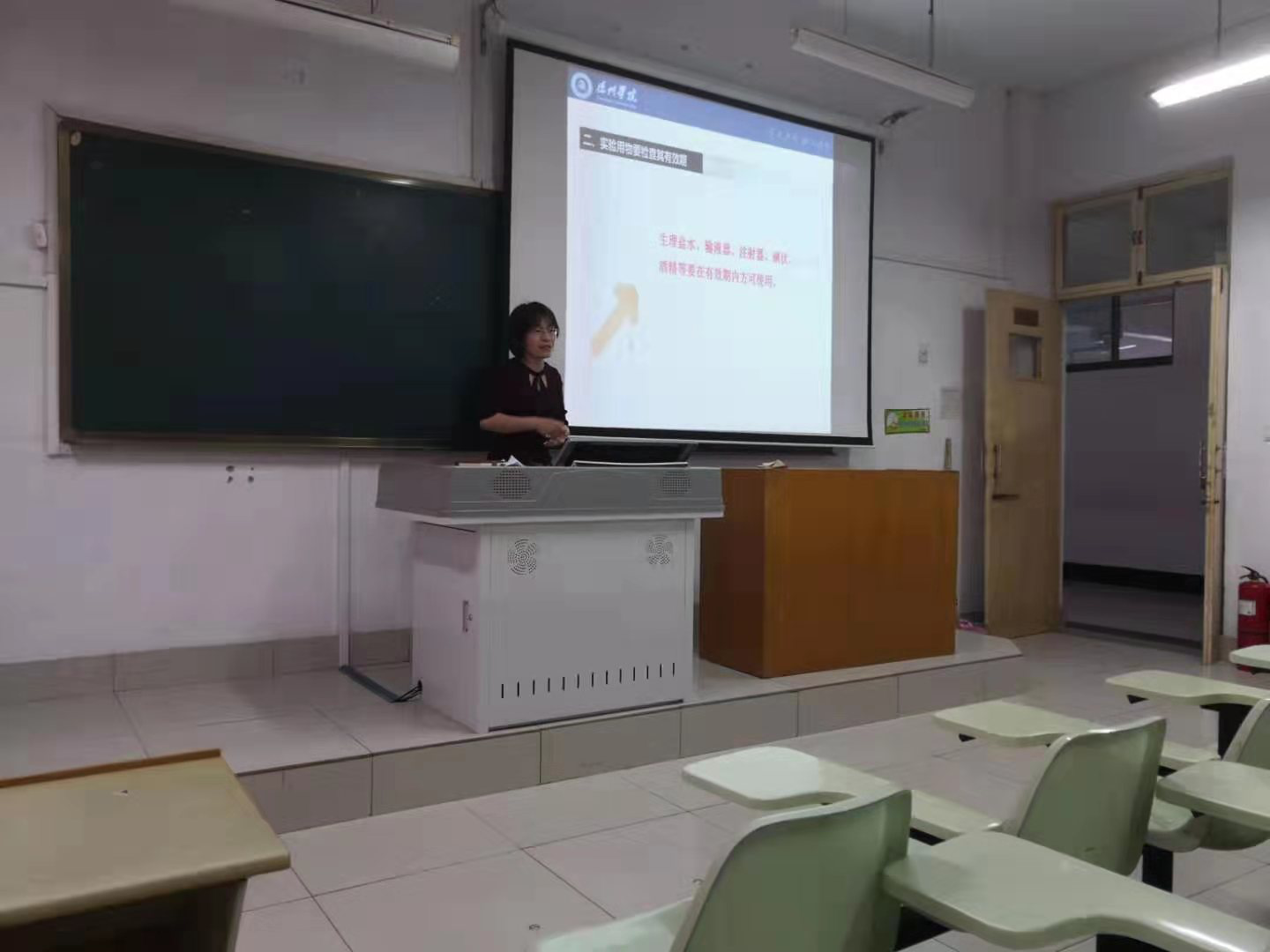 此次活动由护理系李冬艳副主任主持,重点强调了实验室卫生及日常管理注意事项、医疗垃圾处理原则、氧气疗法注意事项及实验用物有效期检查等问题,并向学生提出今后实验实践学习的要求和期望。