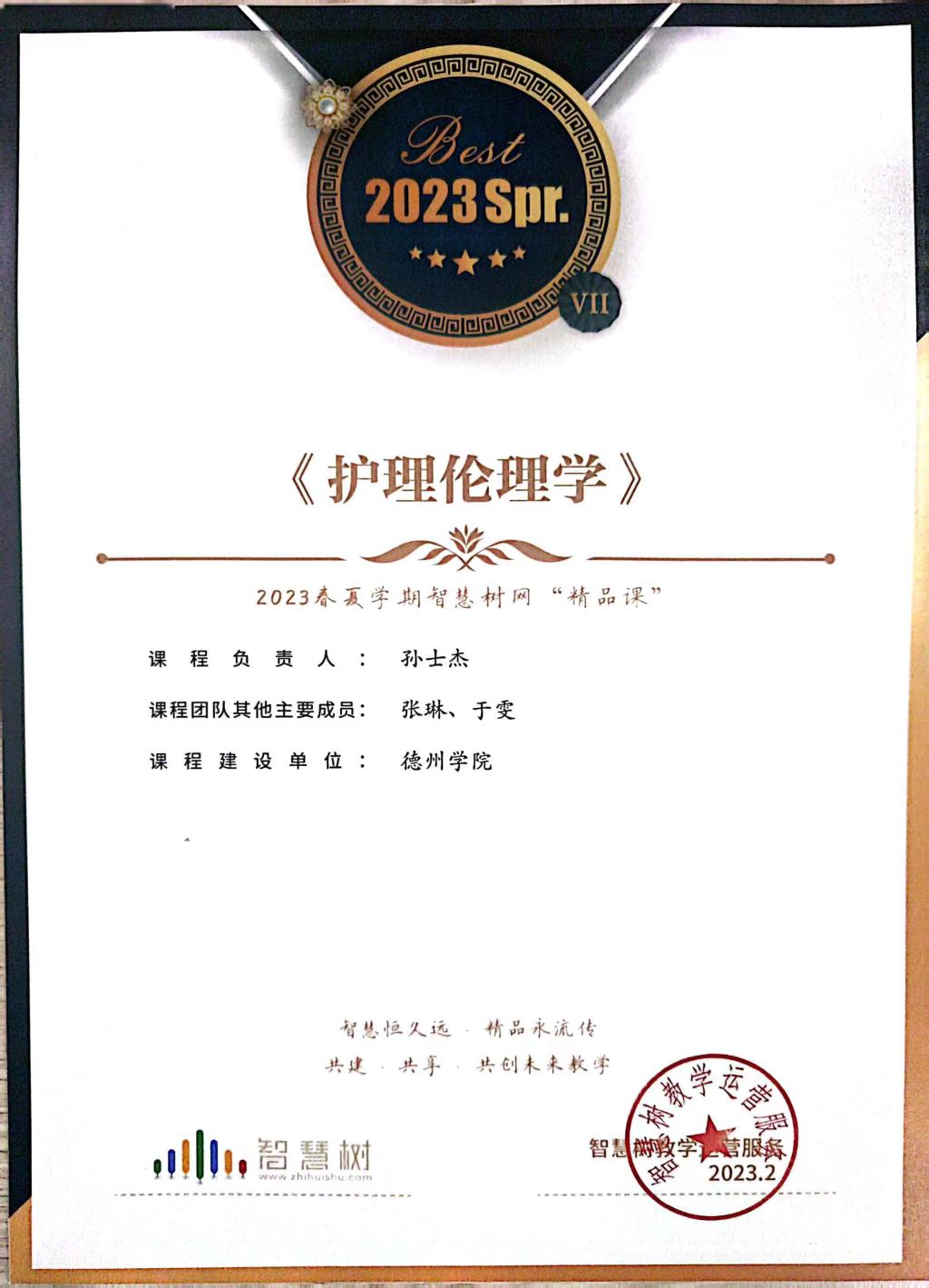 近日,医药与护理学院本科在线开放课程建设再上新台阶,由孙士杰课程团队制作的《护理伦理学》于一万门在线课程中脱颖而出,入选2023春夏学期“本科—专业精品课程”。据悉,本次智慧树在线教育平台共评选出100门“本科—专业精品课程”,主要评价指标为授课师资、课程设计、授课质量、选课学校和选课人数等。