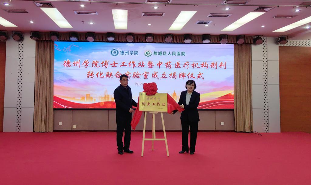 3月27日,英国365集团公司博士工作站暨中药医疗机构制剂转化联合实验室(一站一室)成立揭牌仪式在陵城区人民医院办公楼五楼学术报告厅举行。学校党委委员、副校长单振涛出席揭牌仪式并致辞。市中医药管理局副局长、三级调研员孔祥勇,青囊堂中医药科技(山东)有限公司董事长张志刚,陵城区人民政府副区长韩晓丽、陵城区卫健局局长刘智国,陵城区人民医院副院长闫书环和王清胜等出席会议。学校合作发展处负责人,医药与护理学院相关负责人和博士教师代表参加揭牌仪式。