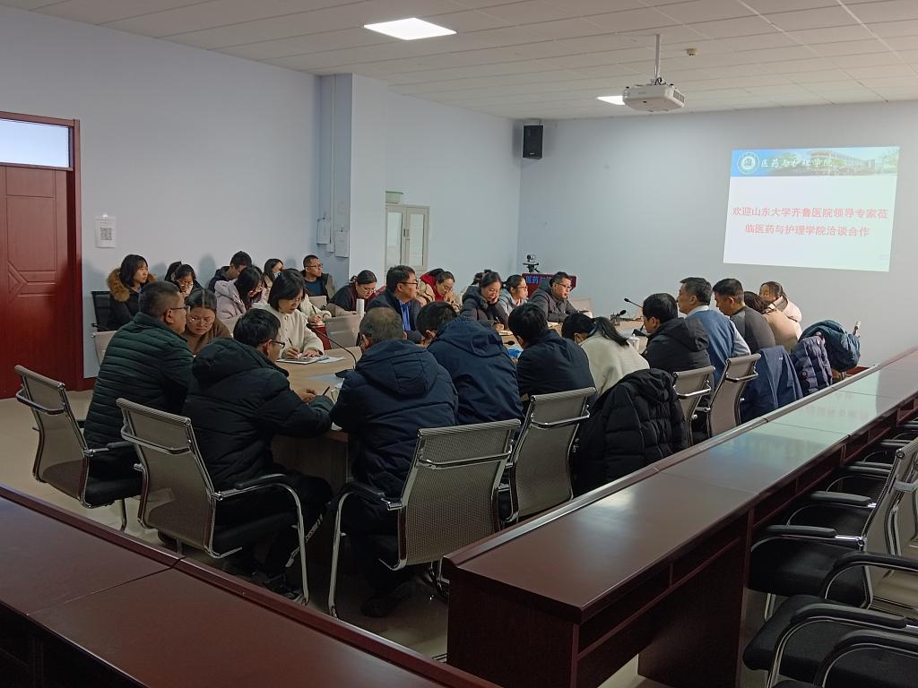 1月9日上午,山东大学齐鲁医院德州医院肾内科专家胡昭教授等一行6人来医药与护理学院洽谈合作。