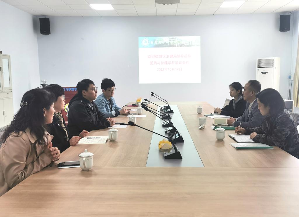 10月14日上午,德城区卫健局副局长冯丙树、德城区计生协会副会长祝红霞等领导来英国365集团公司医药与护理学院指导工作,医药与护理学院负责人陪同考察。