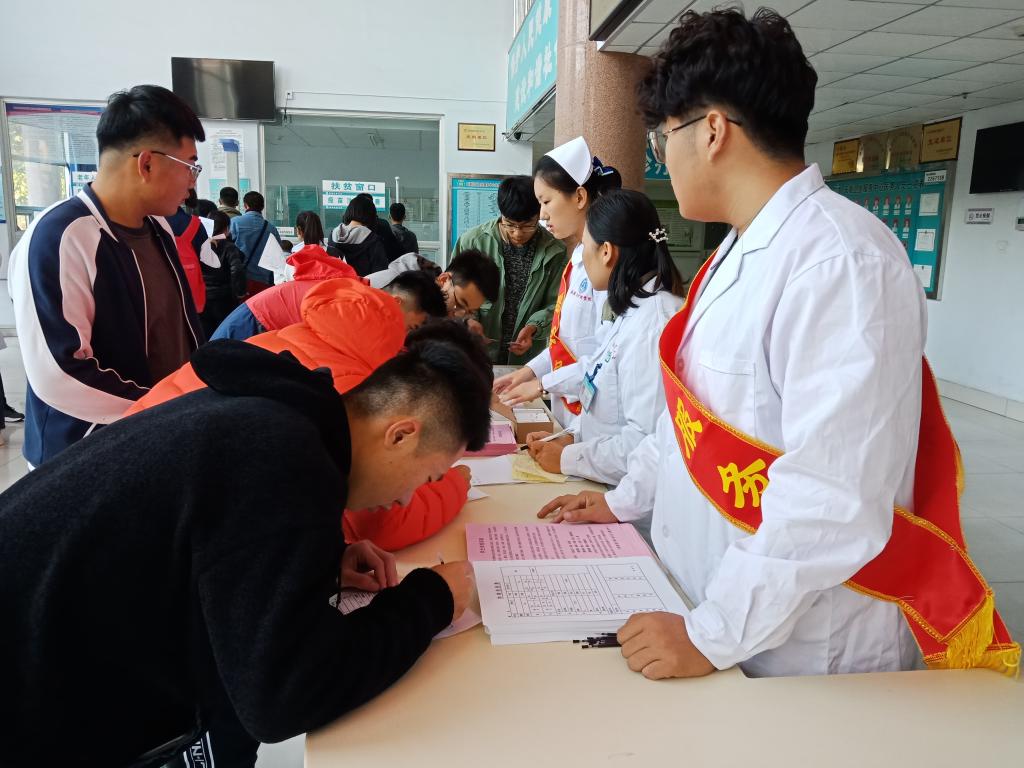 2019年10月14日至10月26日,医药与护理学院南丁格尔志愿服务队组织志愿者协助天衢医院开展新生的体检工作。