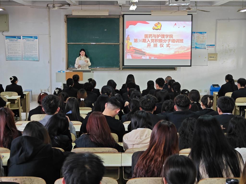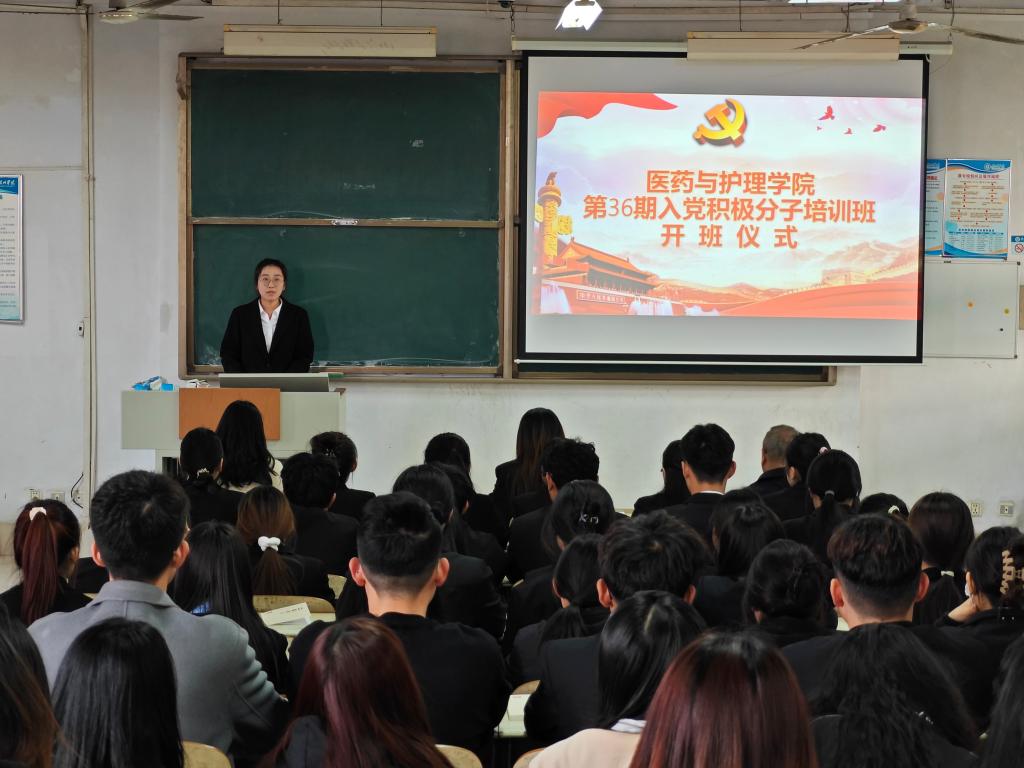 为深入学习贯彻习近平新时代中国特色社会主义思想和党的二十大精神,切实做好入党积极分子的教育培训工作,不断提高发展党员质量,4月9日下午,医药与护理学院于体育楼414教室举办第36期入党积极分子培训班开班仪式,学生党支部书记主持,全体入党积极分子参加,学院党委书记出席并上开班第一课。