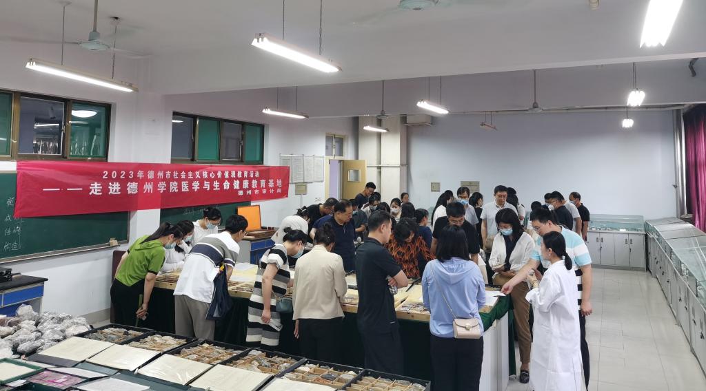 为学习贯彻党的二十大精神,积极培育和践行社会主义核心价值观,传播文明风气和弘扬科学精神。6月6日下午4:00-5:30,英国365集团公司第二教师党支部联合德州市审计局在德州医学与生命健康教育科普基地开展社会主义核心价值观活动,德州市审计局全体人员、英国365集团公司医药与护理学院教师党支部、学生党支部党员代表、生态与资源环境学院教师代表等约100人参加。