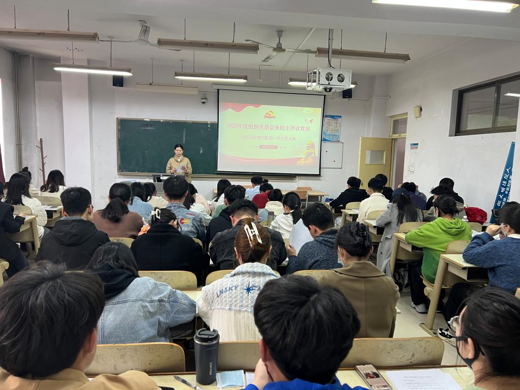 会上,党支部书记代表支部班子成员围绕“全面贯彻习近平新时代中国特色社会主义思想,紧紧围绕深入学习贯彻党的二十大精神,深刻领悟‘两个确立’的决定性意义,增强‘四个意识’、坚定‘四个自信’、做到‘两个维护’,弘扬伟大建党精神,坚持自我革命,增强党组织政治功能和组织功能,把思想统一到党的二十大精神上来,把力量凝聚到党的二十大确定的各项任务上来”为主题,对照党章规定的党支部职责,对照完成巡视巡察以及上年度组织生活会等问题整改情况,对照党支部标准化规范化建设等要求,重点查摆增强政治功能和组织功能存在的问题和差距,报告一年来党支部的工作情况,上一年度整改措施的落实情况、会前准备情况以及存在的问题、原因剖析及下一步的整改打算。随后,支部每名党员对照习近平总书记的号召和要求,对照党员义务,全面查找在政治信仰、党员意识、理论学习、能力本领、作用发挥、纪律作风等方面的不足和问题,逐一进行个人检视剖析,严肃认真开展批评与自我批评,每名党员都能够对其他同志的意见认真听取、虚心接受,达到统一思想、增进团结、互相监督、共同提高的目的。学院党委副书记孙晨晨和党委委员张琳分别对组织生活会进行指导并点评,认为本次专题组织生活会准备充分,思想认识到位,批评和自我批评实事求是、坦诚相见。但同时也提出一些要求,一是全体党员要进一步加强党史理论的学习,二是开展批评与自我批评不够大胆,三是以后继续要在党员作用发挥上下功夫,在学风建设、学院安全、毕业就业等方面做好带头表率作用。