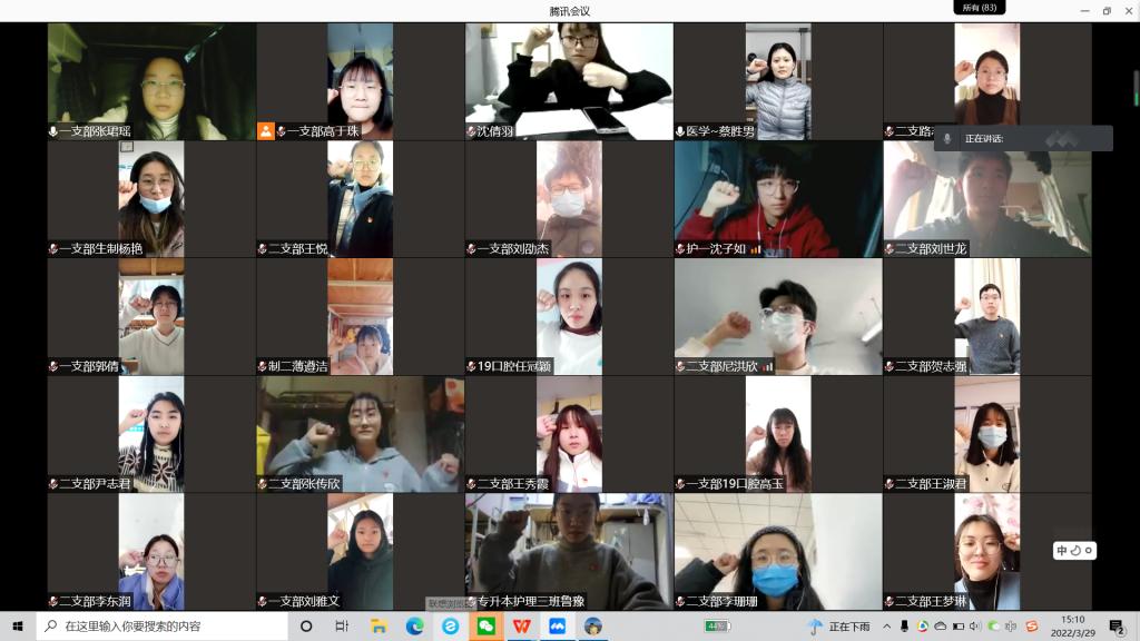 2022年3月29日下午,医药与护理学院第一学生党支部和第二学生党支部利用网络学习平台开展了党员活动日学习,两个支部全体党员参加。