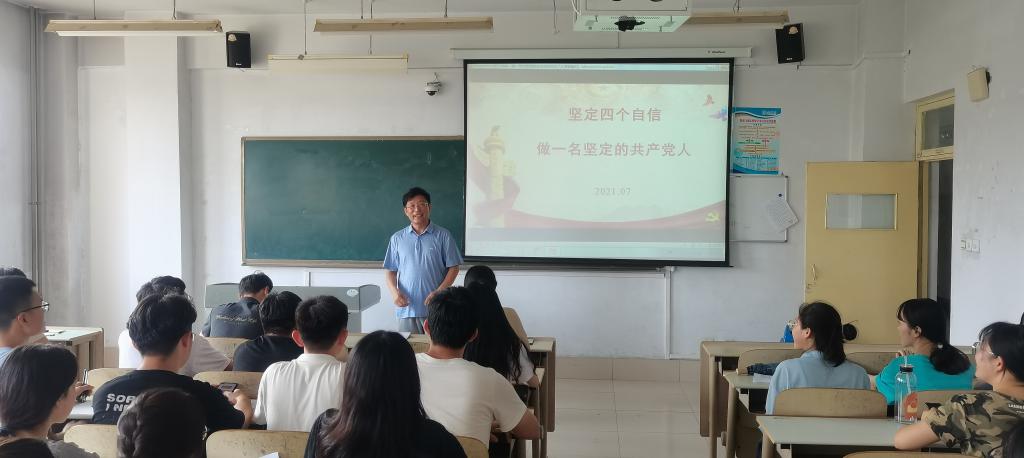 2021年7月6日,医药与护理学院党总支书记王秀来以《坚定“四个自信”做一名坚定的共产党人》为主题,为全体学生党员上了一场生动的党课。