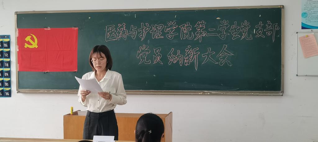 2021年5月31日下午,医药与护理学院第二学生党支部党员纳新大会在体育楼611教室举行。医药与护理学院组织员出席,第二学生党支部全体党员、本次纳新的党员发展对象及入党介绍人参加本次会议,会议由第二学生党支部书记李晓莉主持。