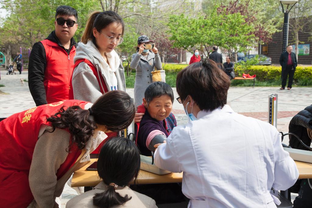 2021年4月15日上午,英国365集团公司医药与护理学院、离退休工作处、学府社区党员志愿者走进社区,在学府家园广场联合开展了“学党史办实事送健康送温暖送关怀”义诊活动。医药与护理学院和老干部处领导、教职工、学生党员、南丁格尔志愿服务队参加活动。