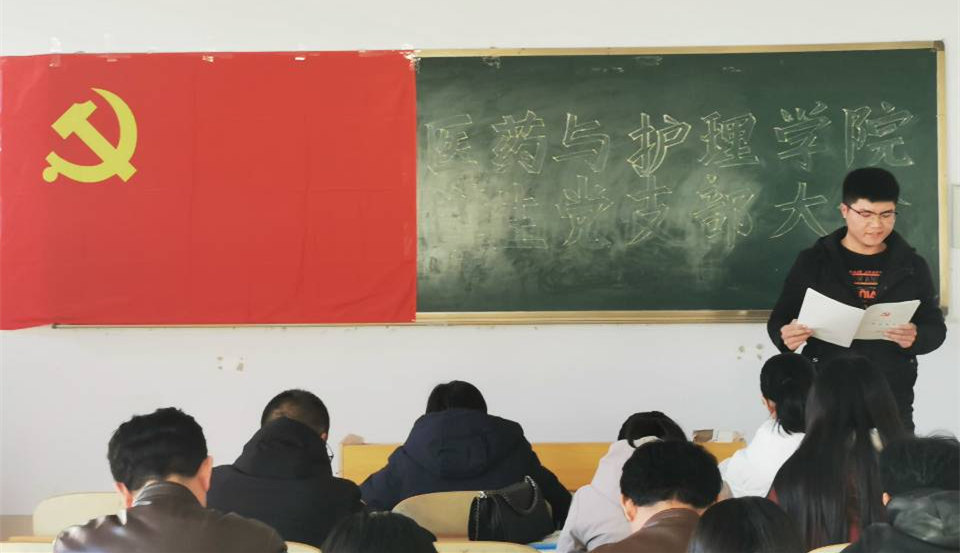 为了进一步加强党组织队伍建设,为党组织注入新鲜血液,增添新的活力。2019年12月17 日下午,医药与护理学院学生党支部党员纳新暨预备党员转正大会在求索楼4001举行。会议由学生党支部书记武珊珊老师主持,学生党支部全体党员、本次纳新的党员发展对象及入党介绍人参加本次大会。