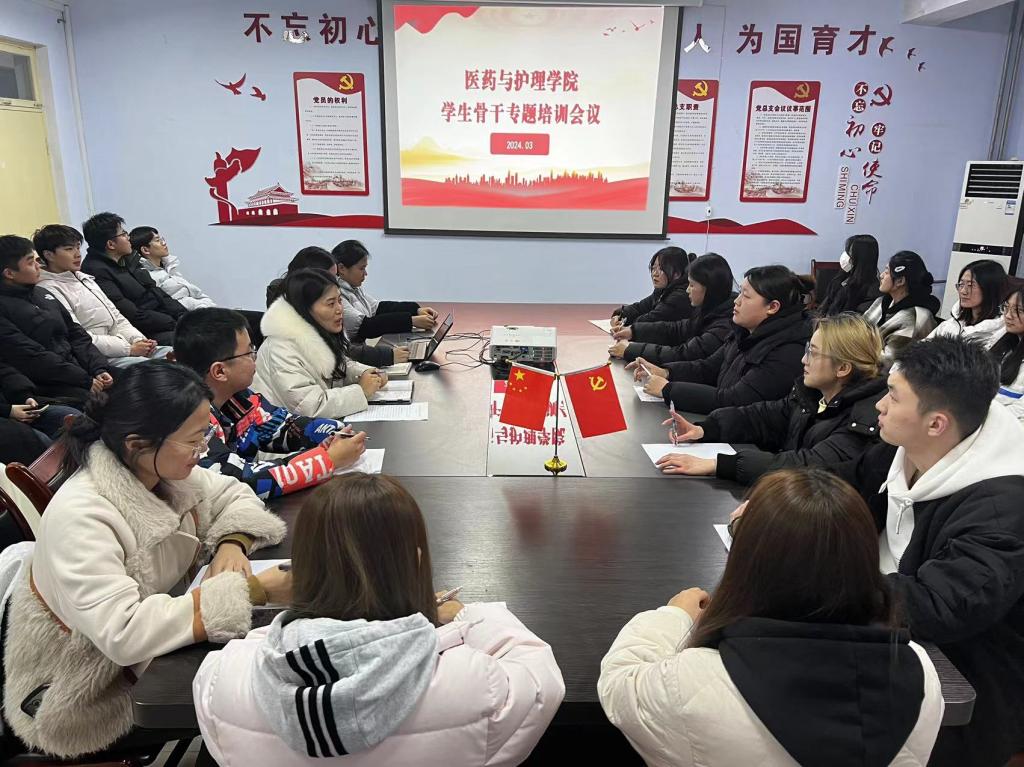 为扎实做好学院新学期开学各项学生工作,为新学期开好局、起好步,全面加强学生骨干的思想政治教育,提高工作能力。医药与护理学院于3月4日下午在体育楼508会议室开展学生骨干专题培训会议,会议由团委书记蔡胜男主持召开,全体学生骨干参加。