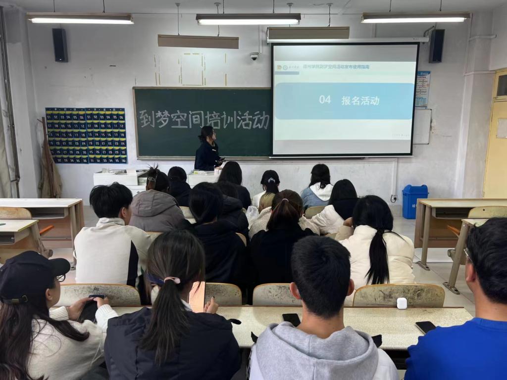 为深入学习贯彻党的二十大精神,秉持全心全意为同学服务的根本宗旨,聚焦自身职能定位,帮助同学们更好地了解和掌握到梦空间的使用方法,充分发挥第二课堂的重要作用。11月19日上午,医药与护理学院学生会在体育楼413开展到梦空间培训活动。