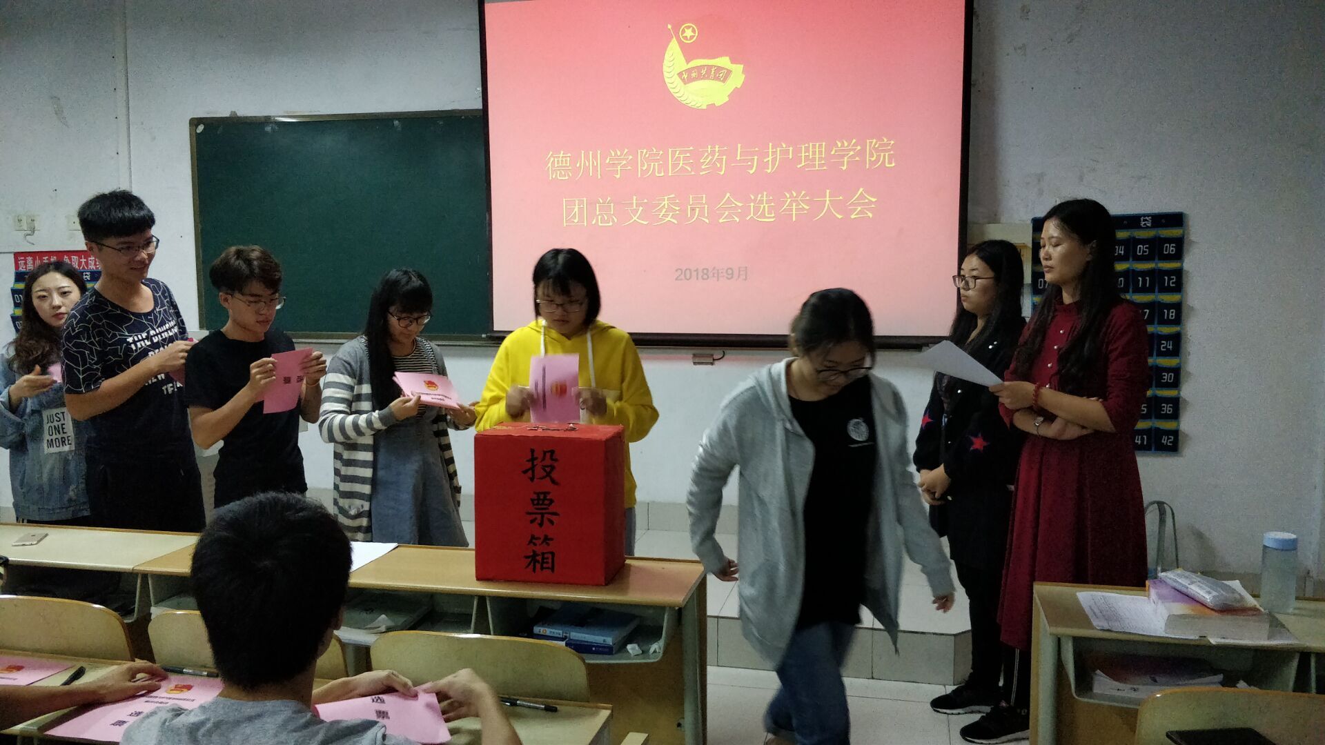 2018年9月20日晚,医药与护理学院团总支委员会委员选举大会在求索楼4002教室隆重召开,医药与护理学院团总支老师、一百名共青团员代表参加此次会议。