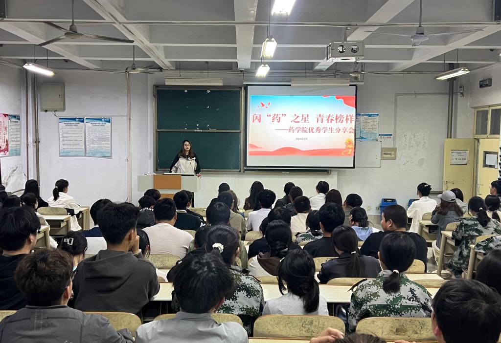 为发挥朋辈榜样力量,帮助新生“扣好大学的第一粒纽扣”,9月22日,药学院在体育楼414教室开展闪“药”之星 青春榜样——优秀学生分享会,全体辅导员、2024级新生和党员学生代表参加。