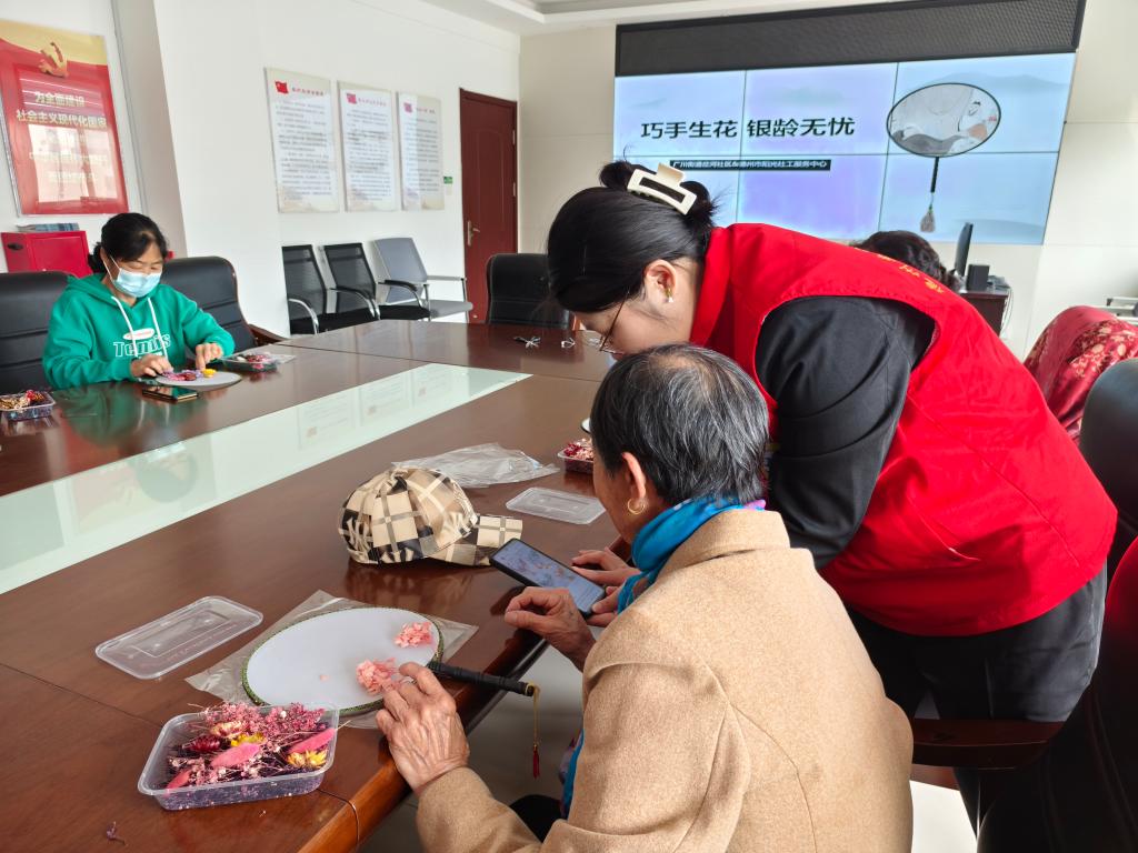 为进一步弘扬中华优秀传统文化,丰富社区老年群体的精神文化生活,医药与护理学院学生党员、南丁格尔志愿者联合德州市阳光社工于4月9日下午在岔河社区开展“巧手生花,银龄无忧”活动。