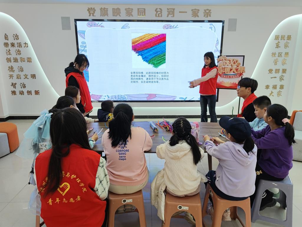 为促进社区儿童健康成长、全面发展,提高美学素养及审美能力,弘扬中华传统编织文化,传承雷锋精神,医药与护理学院于3月16日上午在岔河社区开展以“七彩童心 共护未来”儿童关爱为主题的活动。