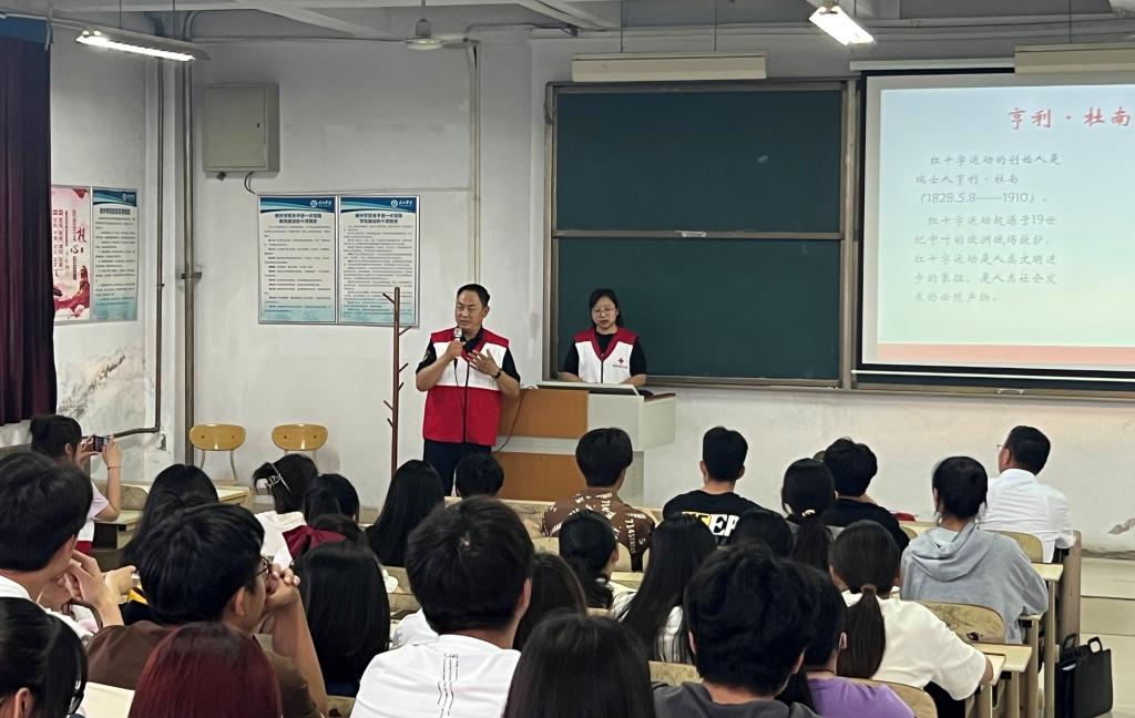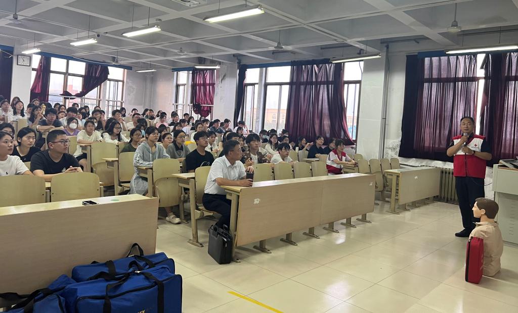 为提高学生救护能力和应急处置能力,增强学生对医护专业的认同感,帮助学生树立“人人学急救、急救为人人”的救护理念,发挥“我为群众办实事”的理念。6月4日-5日,医药与护理学院联合德州市红十字会在8号楼414教室开展为期两天的“红十字应急救护知识培训”活动。活动由医药与护理学院团委书记蔡胜男主持,德州市红十字会相关领导老师出席,2022级护理学专业全体学生积极参加。