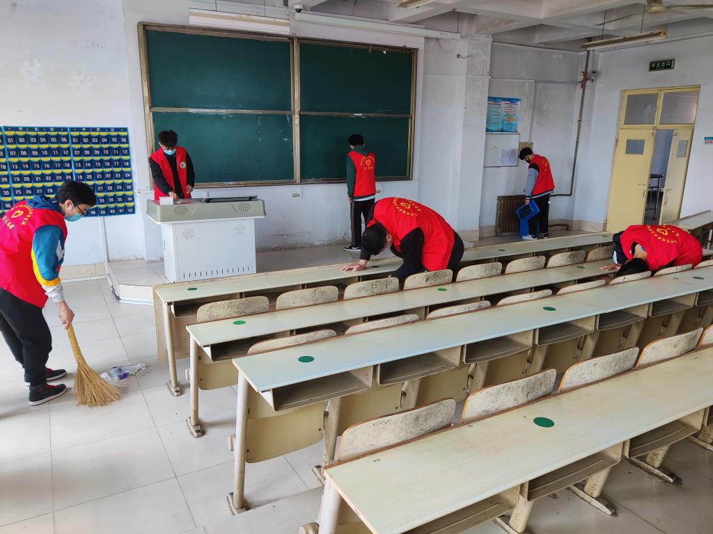 校园封闭管理期间,为弘扬雷锋精神,医药与护理学院开展“净化教室环境,助力校园防疫”志愿服务活动。