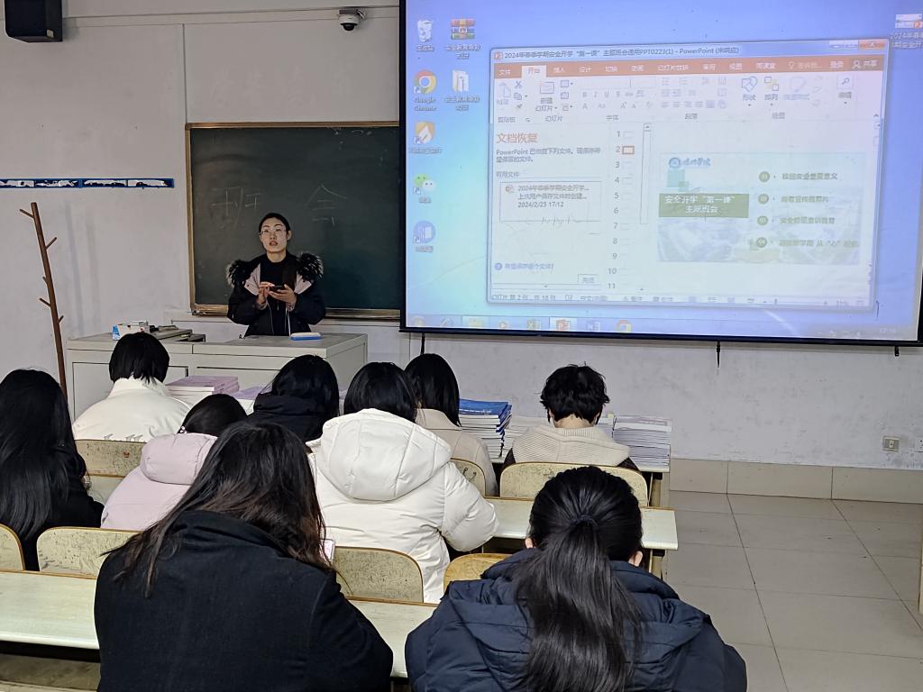 为扎实做好新学期学生教育工作,确保学生健康安全的学习生活秩序,2024年2月25日,医药与护理学院召开2024年春季学期安全开学“第一课”主题班会,全体在校生参加班会。
