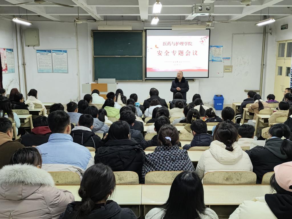为提高学生安全防范意识,构建安全校园体系,切实做好安全防范工作,提高同学们的安全防范意识。医药与护理学院于11月28日下午召开了学生安全教育会议。会议由学院的党委副书记主持,学院党委书记、辅导员、全体舍长参加。