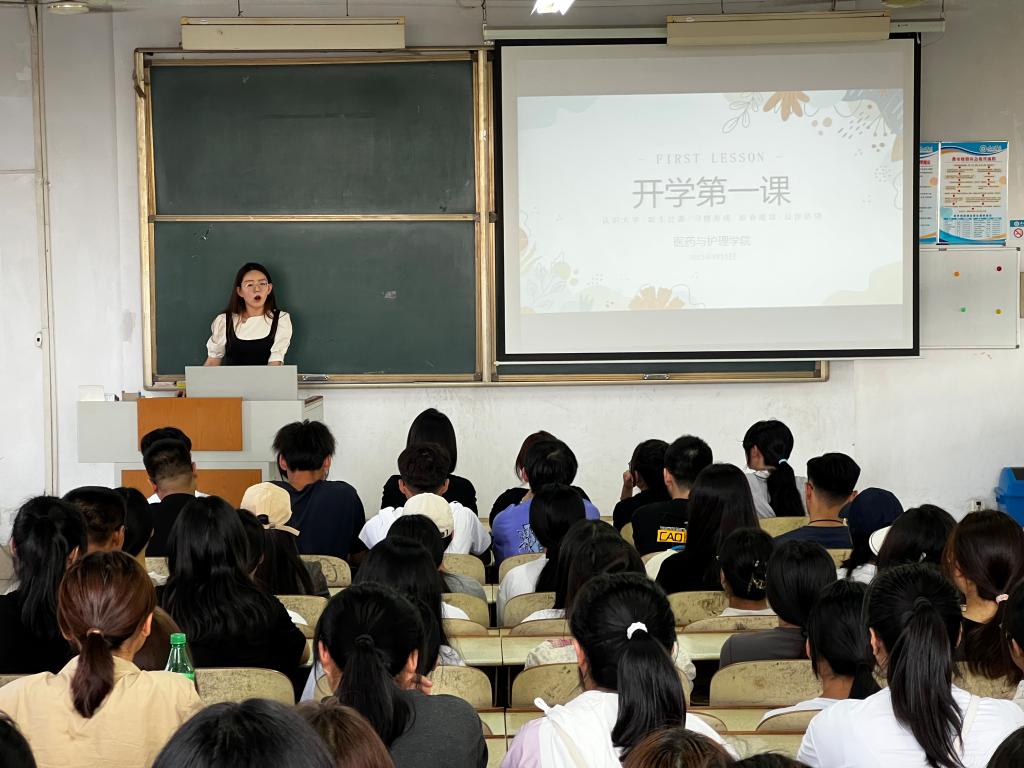 2022年9月3日下午,医药与护理学院在体育楼各教室召开2023级新生入学第一次班会,辅导员、班主任和全体新生参加。