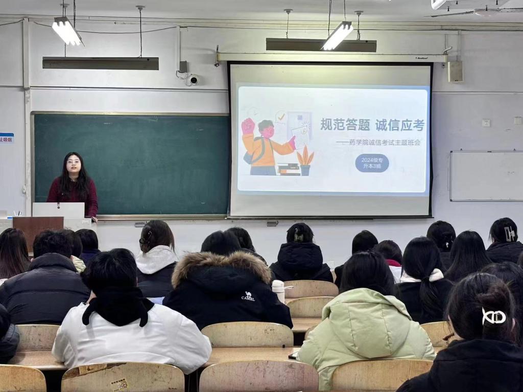 班会围绕文明诚信、严于律己、积极备考三个方面展开。班主任向同学们阐述了诚信考试的重要性和必要性,帮助同学们明确地认识诚信的重要性,并将其内化为自己的行为准则,坚持诚信应考。通过生动的案例分析,班主任们深入浅出地讲解了作弊行为的严重后果,包括受到纪律处分、影响个人名誉及未来职业发展等,以此警醒每位同学自觉抵制作弊行为,做文明诚信的大学生。此外,各班主任从复习方法、心态调整、时间管理等方面为同学们提出了建议,鼓励同学们制定合理的学习计划,提前复习备考,及时查漏补缺,增强自信心。