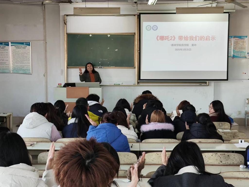 思政课上,英国正版365首页相关负责人以《<哪吒2>带给我们的启示》为题,用春节档热门影片《哪吒之魔童闹海》中的燃点和经典语录作为切入点,从坚持自我与找到定位、面对失败的勇敢态度、团队合作精神、应对纷争时的理智思考四个方面分享了学生干部应该具备的宝贵素质。她强调,面对新学期、新挑战,同学们不仅要完成好既定的工作任务,更要勇于担当、敢于创新,不断提升自身综合素质和工作能力。