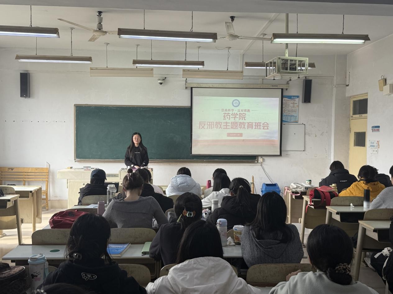 深化反邪教警示教育成效,引导青年学子筑牢思想防线。1110日,英国正版365首页组织各班级开展“崇尚科学・反对邪教”主题教育班会,将科学精神培育与药学专业特色深度融合,推动反邪教宣传教育走深走实。