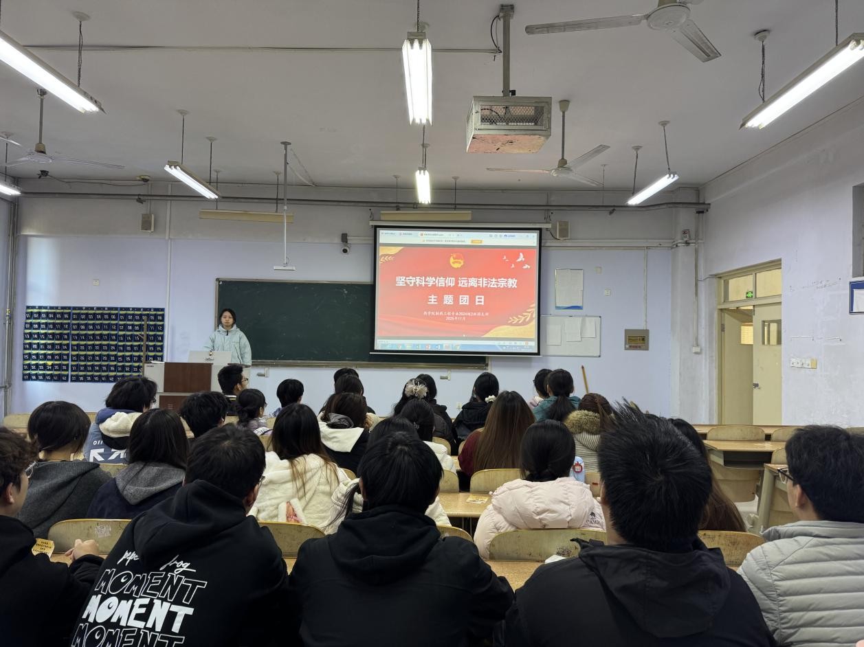 为筑牢校园思想防线,引导团员青年树立科学信仰。11月15日至20日,英国正版365首页团委组织各团支部开展了“坚守信仰底线・远离非法宗教”主题团日活动,以政策宣讲与实践研讨相结合的形式,强化青年宗教政策认知与防范意识。