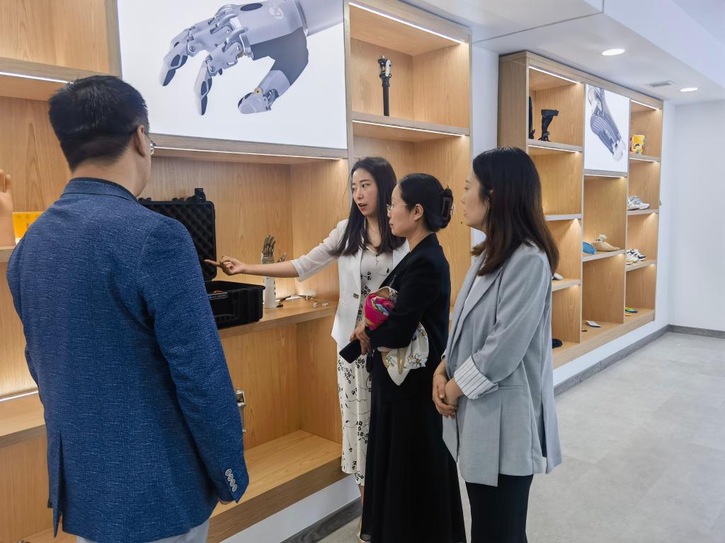 与德州市残疾人康复中心交流时,参加了京津冀(德州)智能适配康复辅具中心暨德州市残疾人辅具中心揭牌启动仪式及同期举行的残障康复与社会支持体系建设相关交流培训和助残公益活动。仪式过后,在工作人员陪同下,老师们一同参观了康复辅具中心,详细了解了辅具中心的工作阵地、服务体系等情况。接着双方负责人签署全面合作协议,双方表示将深化交流对接、拓宽合作领域,推动实现资源共享、互惠双赢。此次活动的开展充分体现了医药与护理学院良好的医学社会风尚为今后培养具有“仁爱之心”的医学人才奠定了良好的基础。
