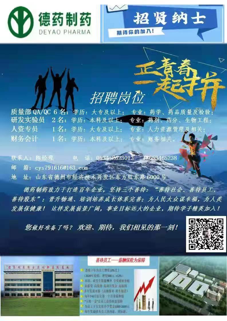 青鸟计划·职等你来|德药制药招聘信息