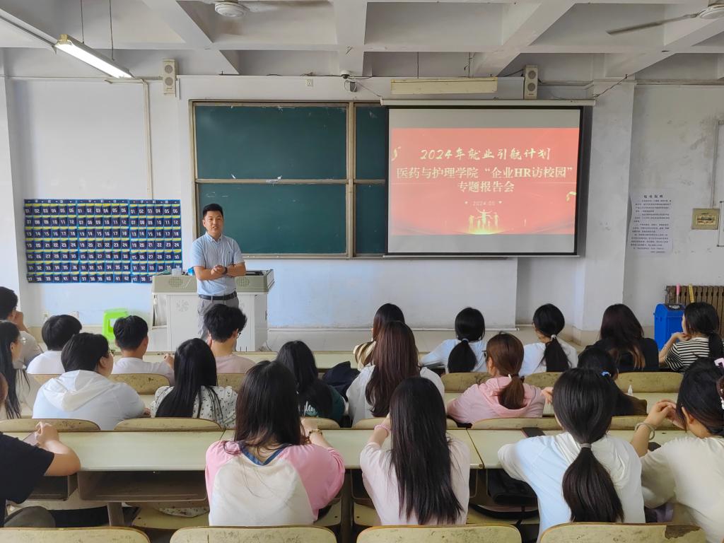 为切实做好2024届毕业生就业工作,搭建毕业生与用人单位交流平台,引导同学们科学规划未来的职业发展道路,医药与护理学院于2024年5月23日在体育楼301举办“企业HR访校园”专题报告会。报告优秀校友邀请赛诺菲中国投资有限公司地区经理王磊和江苏恒瑞医药股份有限公司临床监察员韩启奎为在校生开展职业规划指导。
