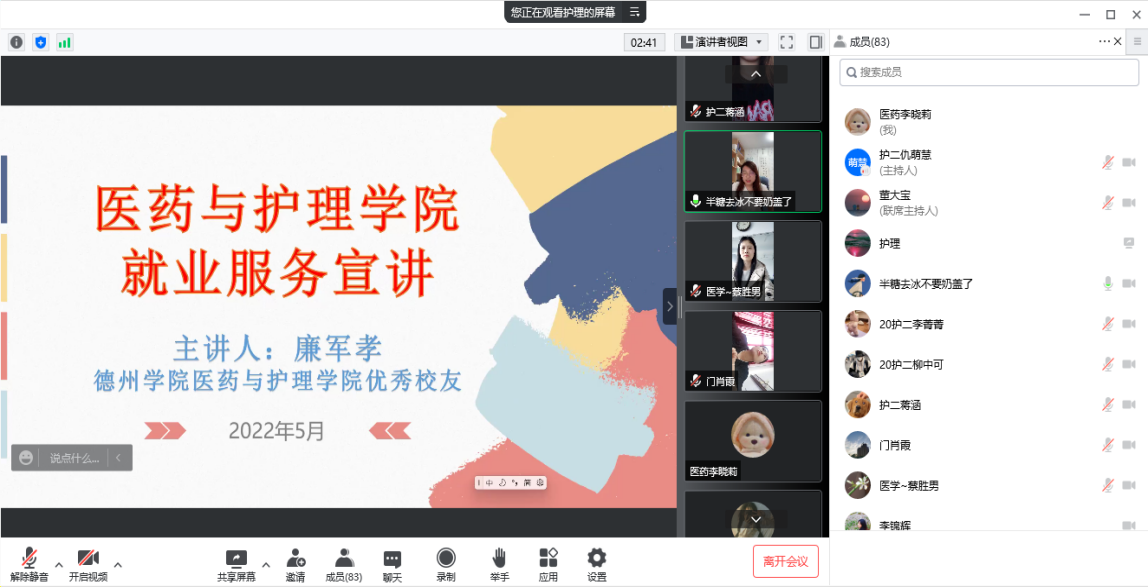 在当前疫情特殊时期,开展云端就业指导活动,体现了医药与护理学院对毕业生就业工作的高度重视,运用多种形式拓宽毕业生就业渠道,为毕业生提供各种就业机会,为学院毕业生就业工作奠定了基础。