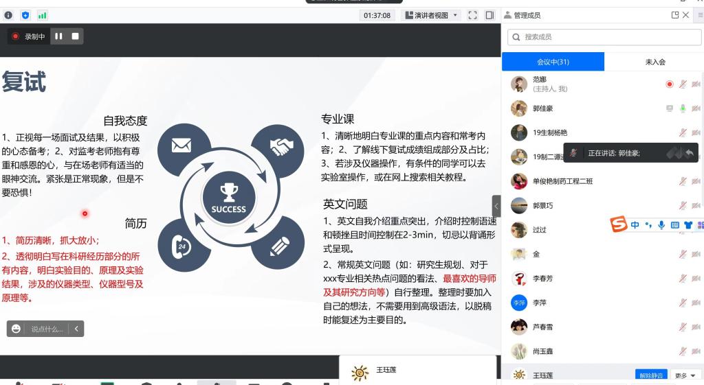 3月20日到3月26日,医药与护理学院以系部为单位,为每位考研上线的学生组织了两次线下模拟面试活动。面试中,考官分别对考生进行英文测试、专业测试和综合测试,对考生面试过程中面试礼仪、面试表现、临场应变能力等方面进行评价和指导。