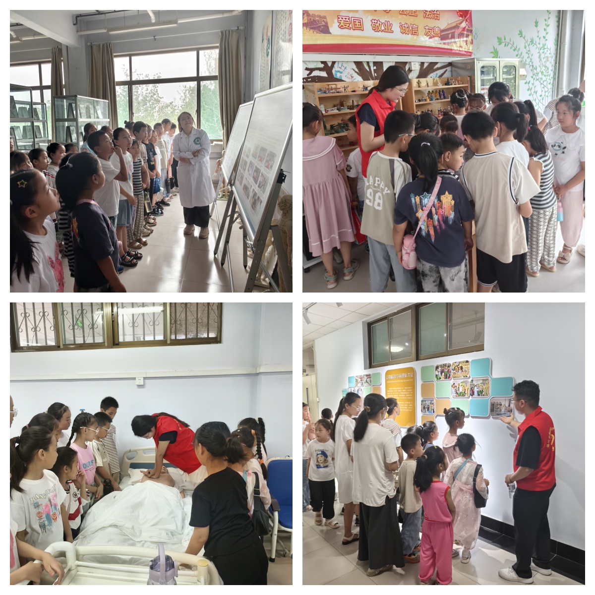青少年在志愿者的带领下,依次参观了中药标本陈列室、人体解剖标本室、护理实训室及儒风广场。讲解员详细介绍了我国中医药的历史发展渊源以及历代杰出医药学家的重大成果,各类中药标本吸引着同学们驻足观看并认真聆听,青少年们对各类中药用途之繁多,中医疗法功效之全面不由得发出赞叹,同时讲解员对学生的疑惑给予耐心解答。面对真实的人体解剖标本,学生们既好奇又敬畏,讲解员用生动的语言和形象的比喻,向青少年们解释了人体的构造和器官的功能,重点讲解了胎儿的发育过程,并对科学的生活方式进行了科普,使青少年对人体科学产生了浓厚的兴趣。志愿者带领学生们参观护理综合实训室时,使他们了解了护理工作的基本流程和技巧,并体验了心肺复苏急救操作。青少年们纷纷表示,在以后的学习生活中要尊重每一位护理工作者。最后志愿者在儒风广场向青少年讲述了董仲舒与孔子的生平事迹和儒家思想的核心价值观,让青少年深刻感受儒家文化的魅力。
