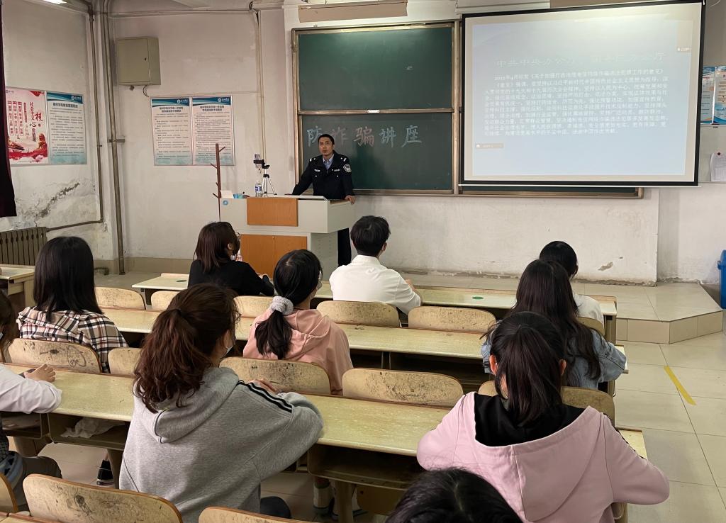 为落实省教育工作会议精神,守好校园安全底线,确保校园安全稳定,提高学生诈骗防范意识和风险辨别能力。4月24日上午,医药与护理学院邀请湖滨北路派出所田欣为2021级全体学生进行防诈骗主题讲座,讲座分主会场和两个分会场。