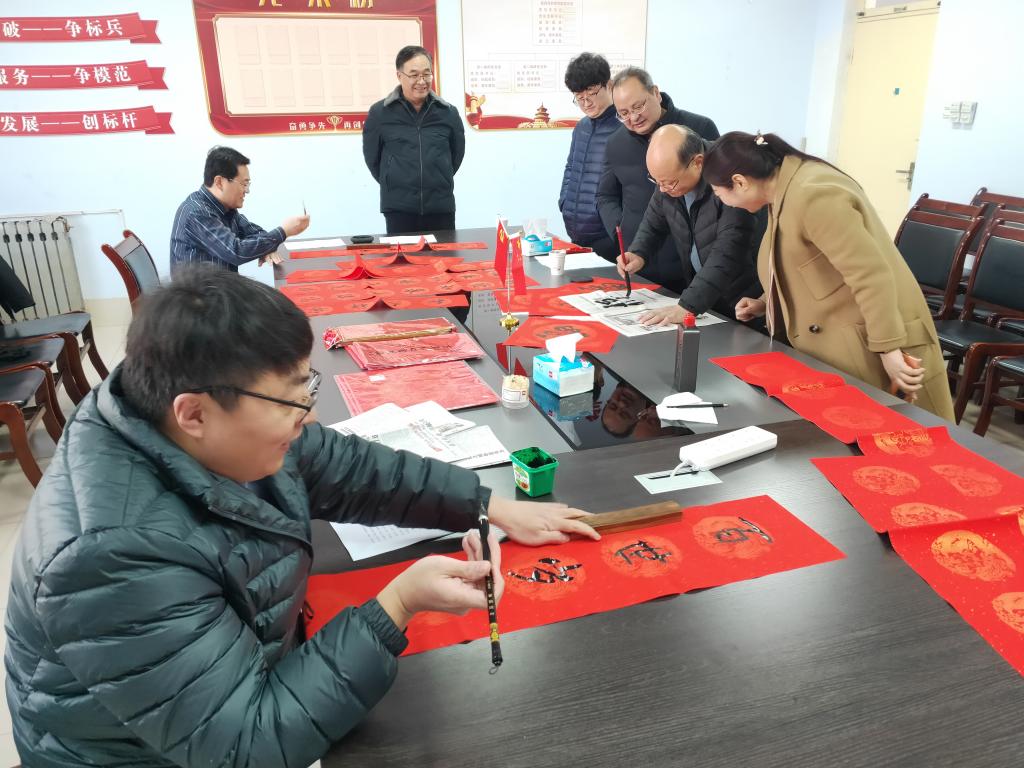 活动现场翰墨飘香、喜气洋洋。老师们泼墨挥毫、笔走龙蛇,多种书体尽显神韵,一笔一划间,既有辞旧迎新的美好愿景,也有对美好生活的祝福。一句句吉祥的祝福跃然纸上,一张张喜悦的笑脸随笔墨飞扬,一副副对联新鲜出炉,浓浓的年味儿“扑面而来”。一上午的时间,活动室的地面、桌子上便铺满了红彤彤的对联和福字,到处洋溢着对新年满满的期盼。活动结束后,老师们相互赠送写好的春联和“福”字,传达对彼此最真诚的新春祝福。
