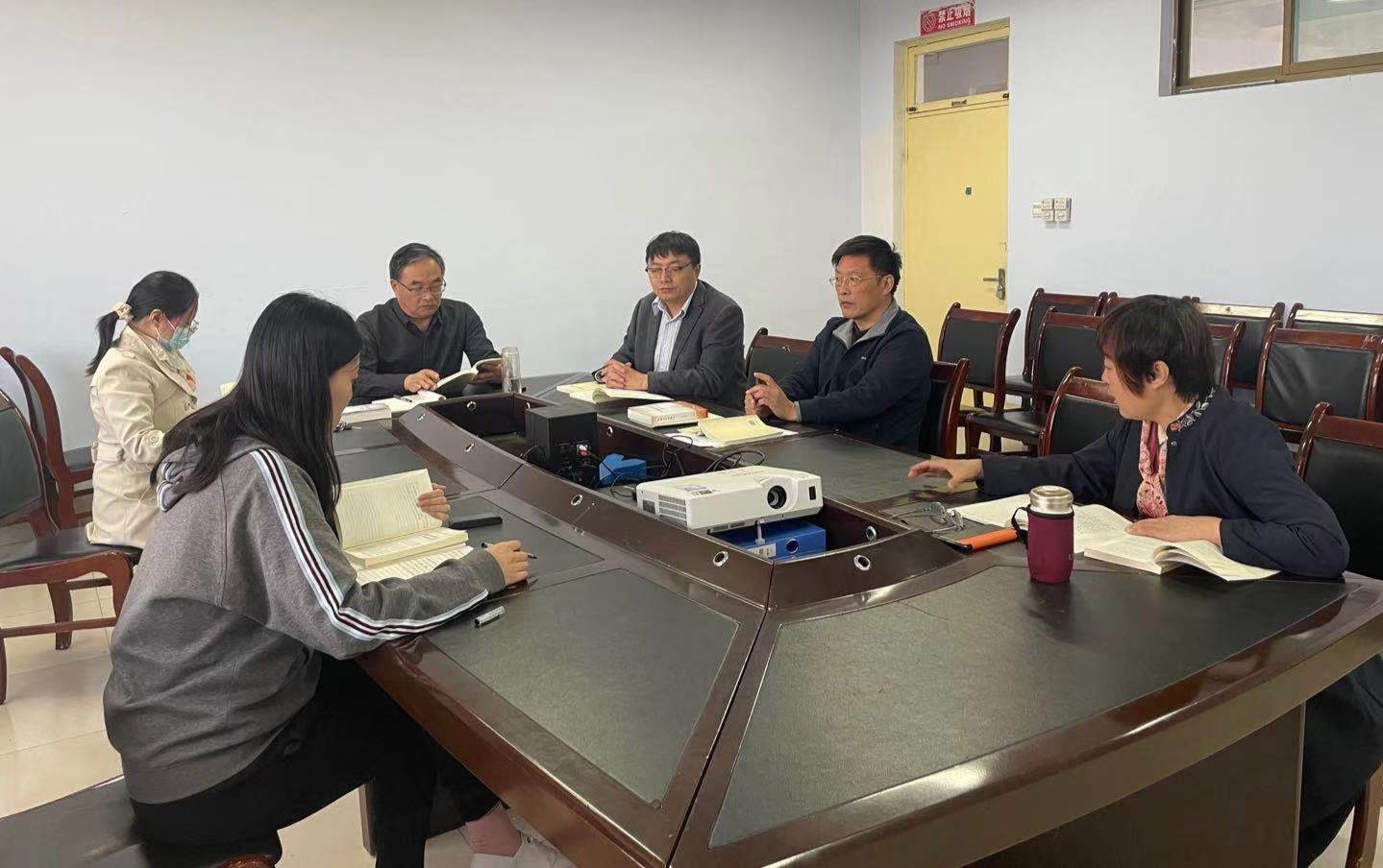 4月14日,医药护理学院班子成员、党支部书记,在体育楼508会议室,开展党史学习教育集体学习。