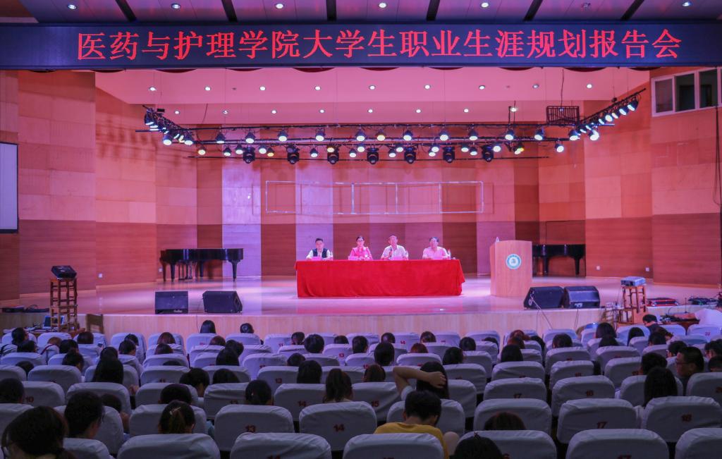 6月19日下午,医药与护理学院在音乐厅举办大学生职业生涯规划报告会,新华鲁抗药业零售连锁有限公司总经理于慧洋、新华鲁抗药业零售连锁有限公司行政人事部经理胡玉雷出席报告会。
