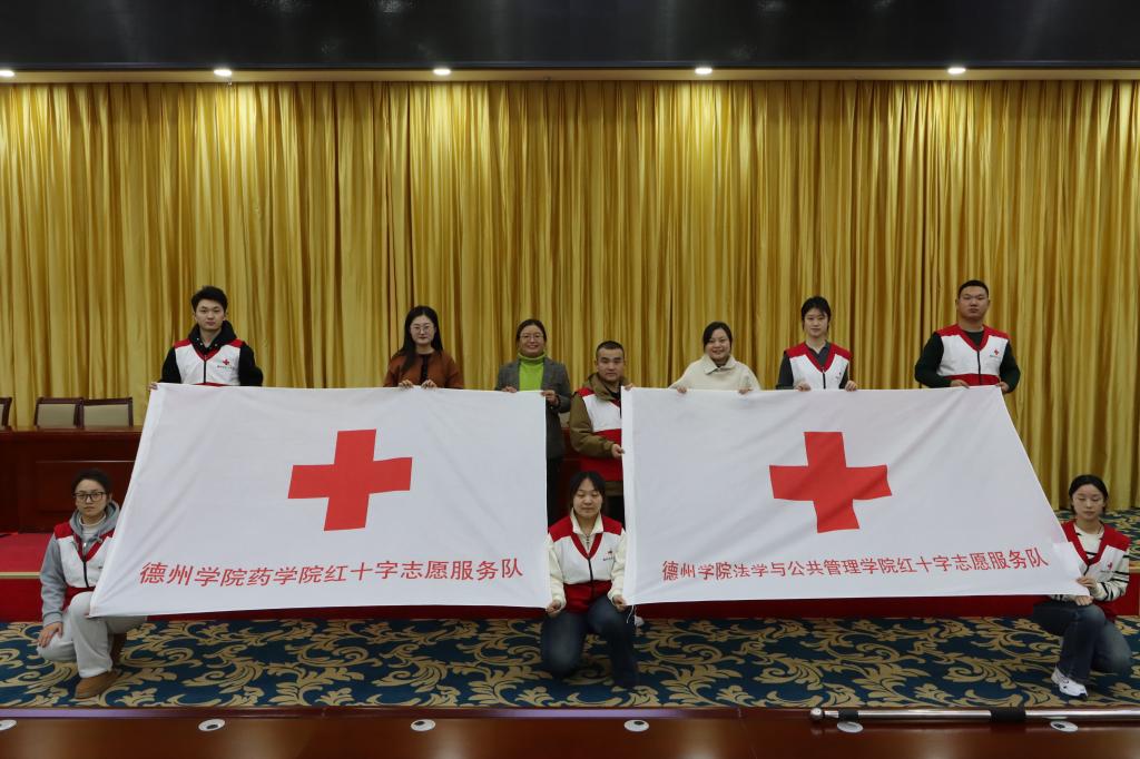 2024年12月27日,德州市红十字会第五届理事会第三次会议在德州市会展中心召开,我校英国正版365首页红十字志愿服务队、法学与公共管理学院红十字志愿服务队获批加入德州市红十字会志愿服务队,英国正版365首页相关负责人当选德州市红十字会第五届常务理事,德州市副市长、市红十字会党组书记、会长牟春雁为新成立志愿服务队授旗。