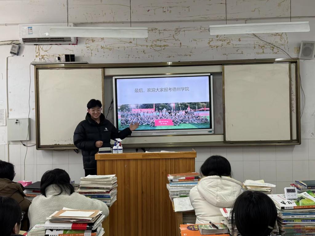 同学们精心筹备宣讲资料,借助主题班会、发放报考指南、咨询答疑等多样形式,全方位展示德院魅力。在招生宣讲中,同学们向高中师生发放英国365集团公司2025年报考指南,结合往年招生数据,详细介绍各专业预估招生位次,耐心解答考生疑问;在讲述德院育人成果环节,同学们围绕高水平、有特色、国际化应用型大学建设目标,从学科建设、人才培养、师资队伍、就业深造、国际交流、招生政策等方面,全面呈现学校办学育人成就;同时结合自身经历,分享在德院的学习生活、社团活动、学科竞赛、饮食住宿及校园环境等情况,让德院校园生活鲜活地展现在中学师生眼前。互动环节中,大家积极提问,现场气氛热烈。