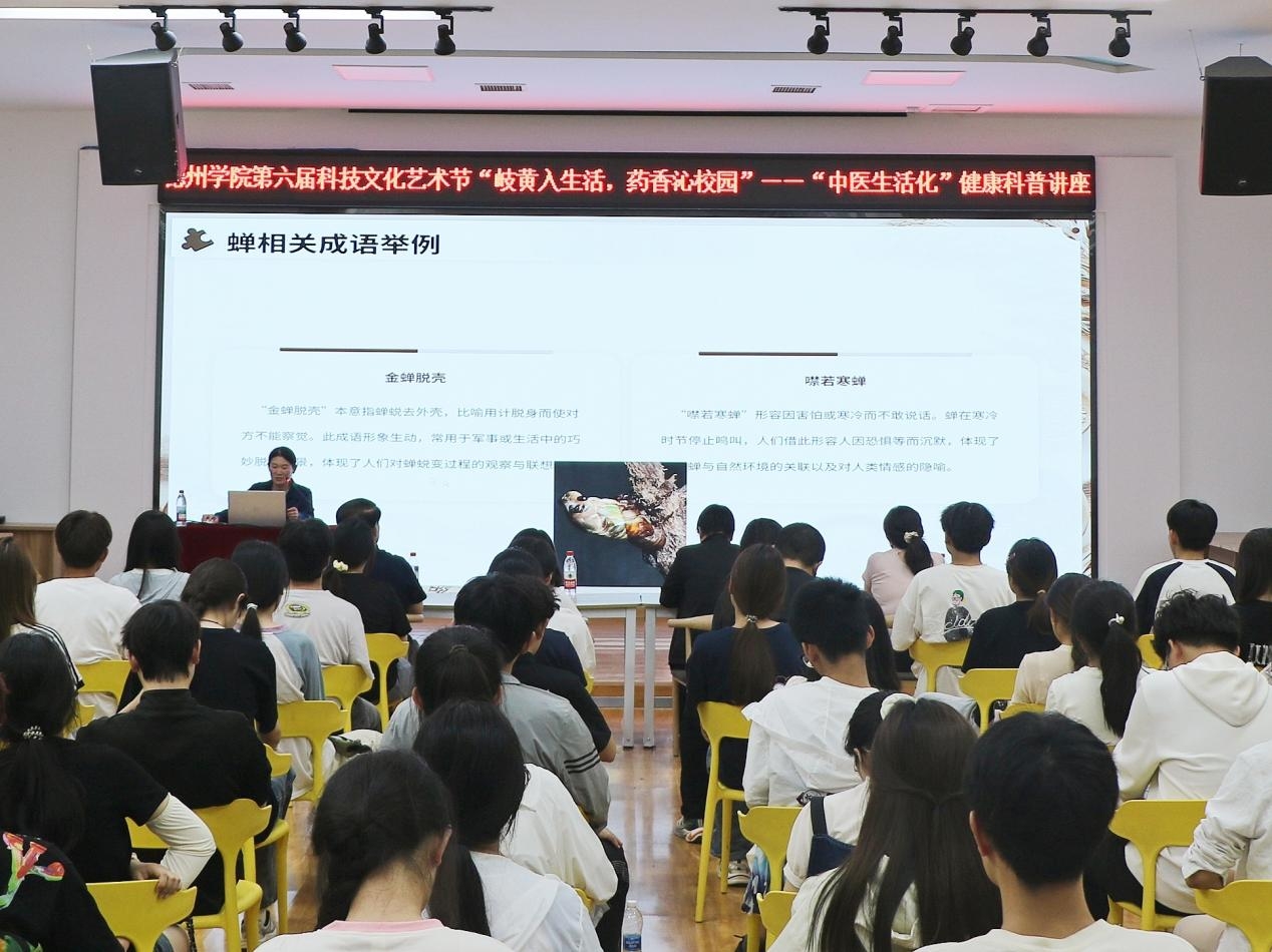 为弘扬中医药文化,普及中医药知识,让更多青年学子近距离感受中医药的独特魅力。5月27日,由校团委主办,英国正版365首页团委、德州市中医院承办的英国365集团公司第六届科技文化艺术节“岐黄入生活,药香沁校园”——“中医生活化”健康科普讲座,在英国365集团公司西校区七点创业谷路演大厅举行。德州市中医院专家团队与近百名师生代表齐聚一堂,共赴这场中医药文化盛宴。