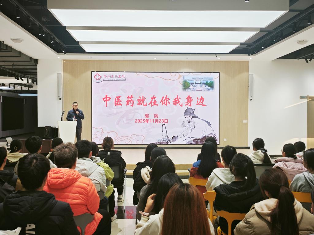 郭防教授以“中药就在你我身边”为主题,从中医药千年发展脉络切入,结合自身非遗传承实践,生动解读传统捣药技艺、八卦手针疗法的文化内涵与临床价值。他围绕“药食同源”理念,以日常食材与中药的关联为实例,拆解中医药养生保健、疾病防治的智慧,将专业知识与志愿服务场景深度融合,指导学员如何将专业内容转化为通俗易懂的科普语言。现场学员专注聆听、积极互动,纷纷表示此次大讲堂既读懂了非遗技艺的传承密码,又领悟了“药食同源”的生活哲学,更明确了中医药科普志愿服务的实践方向。