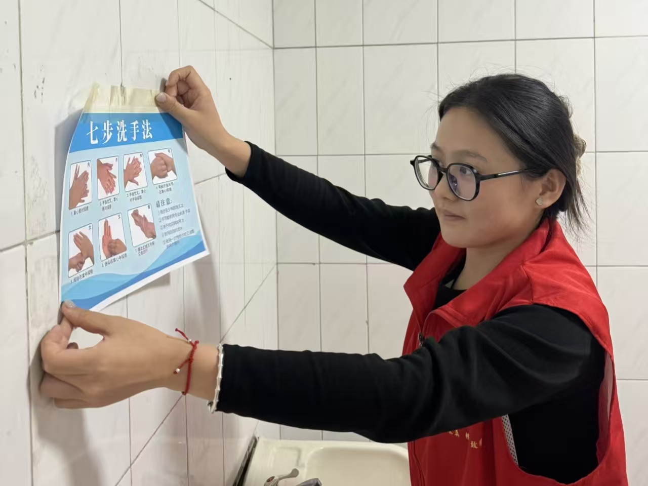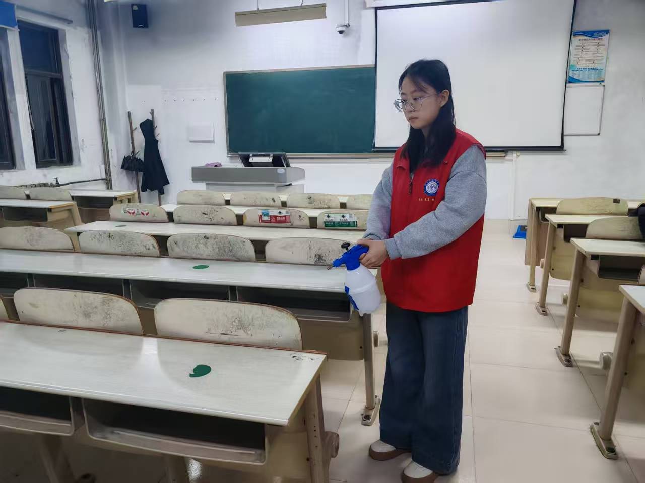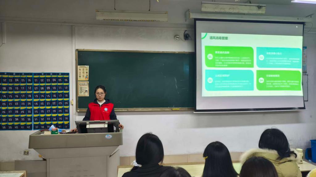 活动以多维度形式推进防控落地。专题宣讲现场,志愿者们发挥药学专业优势,用通俗易懂的语言系统解读甲流传播规律、典型症状,重点讲解口罩正确佩戴、环境消杀等科学防控要点,为师生送上兼具专业性与实用性的“健康指南”;在各教学楼、公寓楼的洗手池旁,设计精美的“七步洗手法”示意图整齐张贴,将个人防护提醒融入校园生活细节;志愿者们分组走进教室,细致开展开窗通风、课桌座椅及门把手消毒等工作,用行动筑牢安全防线。