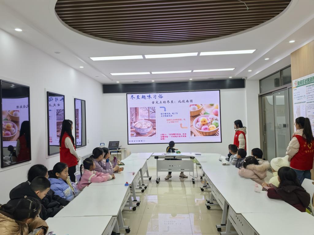 志愿者紧扣冬至养生传统,通过实物展示、趣味动画等生动形式,向孩子们科普生姜、红枣等冬季常见本草食材的特性、功效及家常应用技巧,并设置互动问答,充分调动孩子们的参与热情,现场氛围热烈融洽。在主题绘画环节,志愿者提供融入本草元素的绘画模板,耐心指导孩子们发挥想象,将所学本草知识融入创作,诞生了“本草养生汤圆”“团圆水饺宴”等诸多充满童趣的作品。活动尾声,孩子们集中展示作品,组成“本草冬至童趣展”。